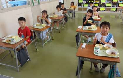 1年生は、給食の配膳の仕方にずいぶん慣れてきました。スムーズに準備できました。