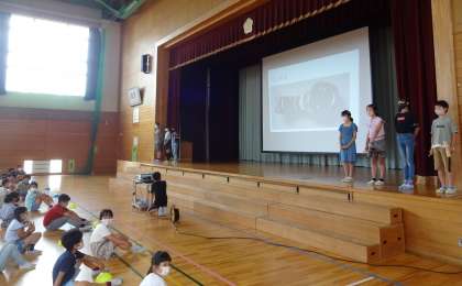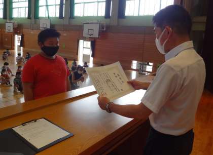 また、4年生児童の受賞紹介をしました。「第16回わんぱく相撲富山場所 優勝」「第18回富山県スポーツチャンバラ選手権大会 小太刀小学生3・4年の部 第3位」「前記に同じ 異種 小学生4〜6年の部 第3位」の3つの受賞、おめでとうございます。