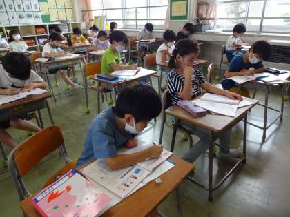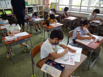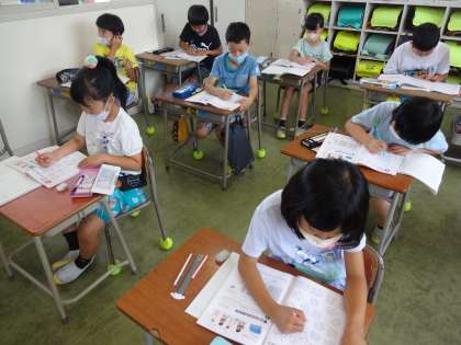 教科書に書き込みながら集中して問題に取り組んでいます。