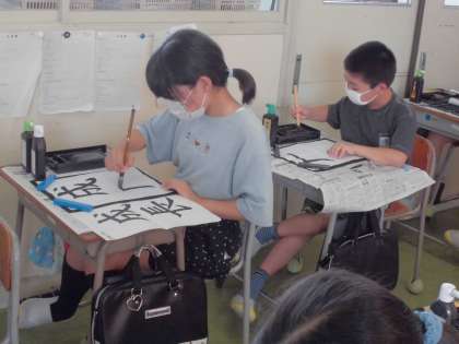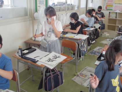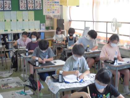 「成長」を書きました。書き順に注意して、最初に書いた画が出ることを意識しながら、全体のバランスに気を付けて書きました。この字は、先週も書きましたが、改めて難しいことを実感しました。