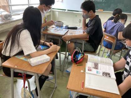 今日から歴史の学習に入りました。歴史に親しむために、教科書や資料集、自分の知識を生かして、学校の特別教室について、できた順序や作った理由を考えました。