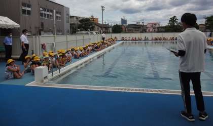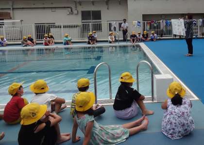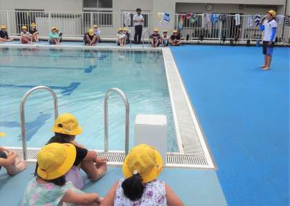 梅雨時期ですが、天候に恵まれ、プール開きを予定どおり行うことができました。