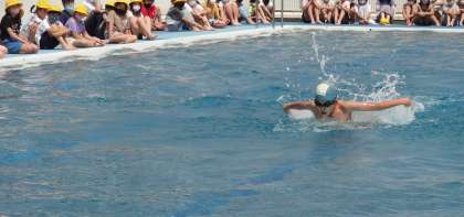 また、後半には、5・6年生の代表児童による模範水泳を披露しました。