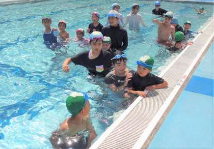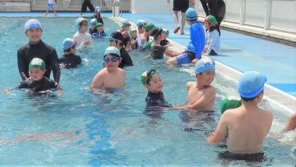 水を怖がる1年生もいましたが、6年生は優しく声をかけるなど、みんなが楽しく過ごせるように気遣って行動しました。