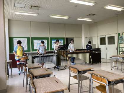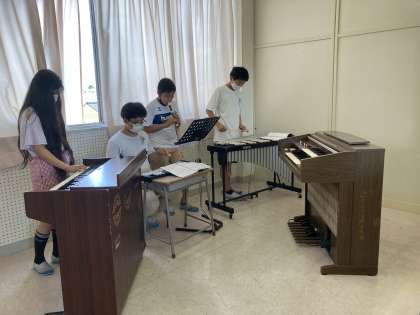 各グループで練習してきた「ラバーズ コンチェルト」の演奏発表会を行いました。低音、飾りの旋律、和音、主な旋律のパートに分かれて、全体のバランスに気を付けました。写真では、AグループとBグループが演奏しています。