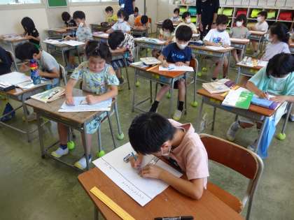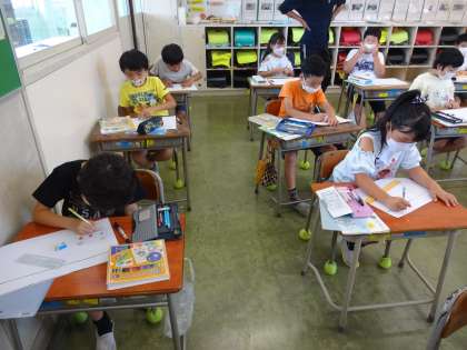絵を完成させたら、絵を見せながら友達に説明し、友達から質問してもらって考えを詳しくしていきます。