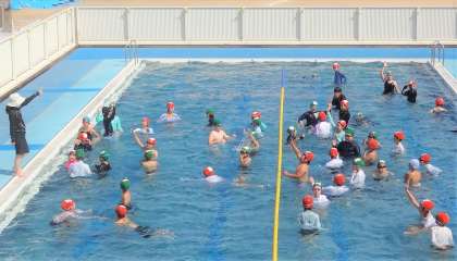 前半は、4・5年生合同で、水中じゃんけんや、沈んでいる物を潜って取る活動をしました。