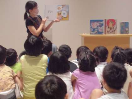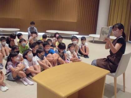 その後、本の読み聞かせをしていただきました。読み方が上手なこともあり、とても真剣に聞きました。