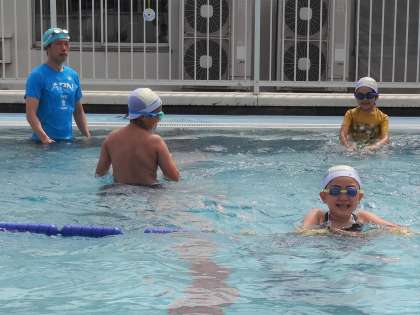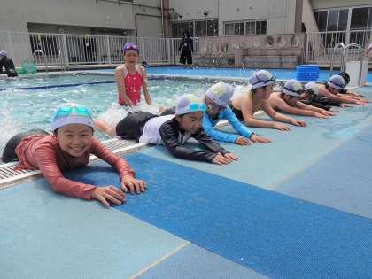 水泳の指導者3名をお招きし、技能別で3グループに分けて、教えていただきました。