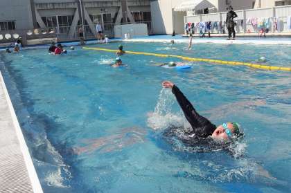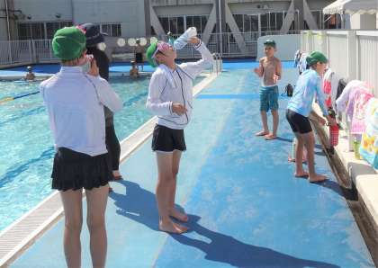 途中に水分補給を行いながら、気持ちよく泳ぎました。