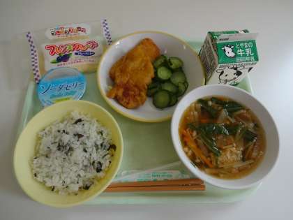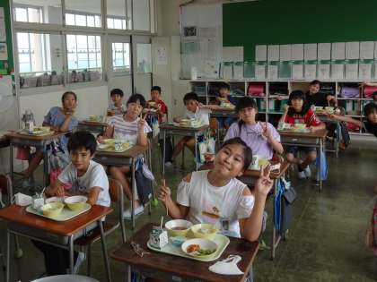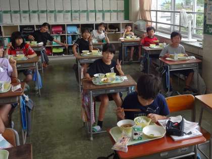 今日の給食は、選択献立でした。どの学級の子供たちもおいしくいただきました。給食時間に4年生教室をのぞくと、子供たちは、「おいしい」サインを出してくれました。