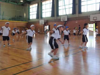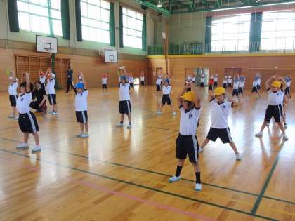 2限に、1・2年生合同で、プロバスケットボールチーム「グラウジーズ」の出張クリニック(ダンス教室)を行いました。