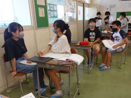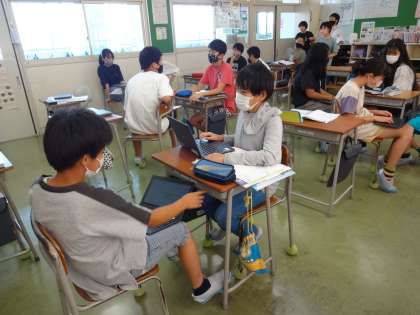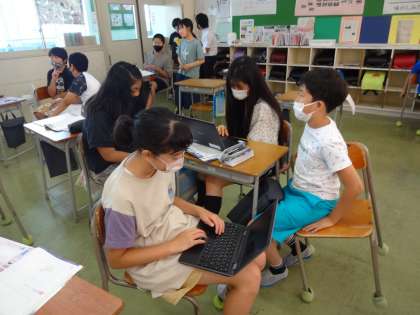 ペアになり、互いの好きなスポーツ、好きな食べ物、行きたいところ等を英語で質問し、答えた内容を、クロームブックで入力しました。
