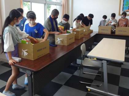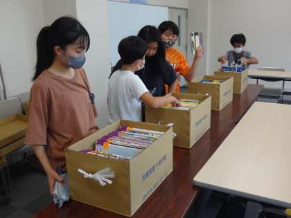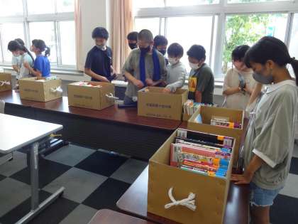 書店からお借りしている本を見ながら、自分が読みたい本、図書室に入れてほしい本を選んでいます。