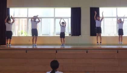 2枚目の写真は、ダンス教室の最後に、ステージ上でダンス披露してくれる人を募ったところ、勇気を出してダンスした5人の子供たちです。