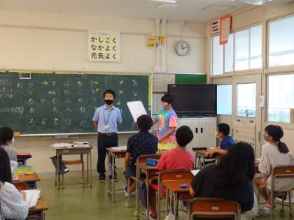 五十音の中から友達と重ならないように頭文字を選び、ミニホワイトボードに書きました。
