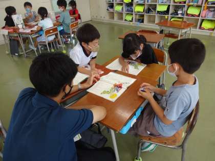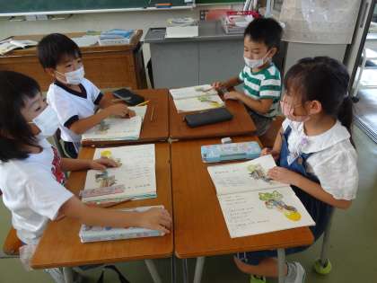 物語文「おおきなかぶ」の音読発表会に向けて練習をしています。