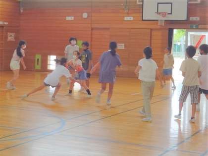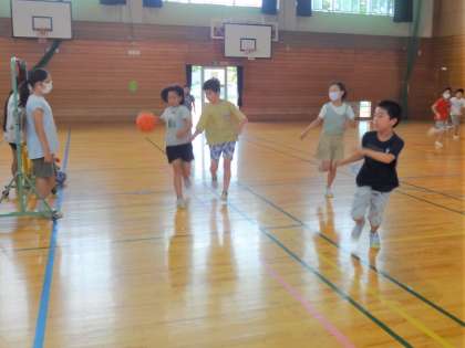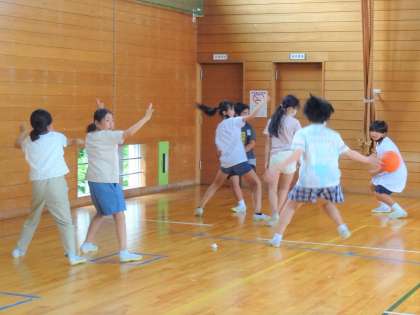 5年生の子供たちは、「花丸10個のご褒美」として、バスケットボールとドッジボールを楽しみました。