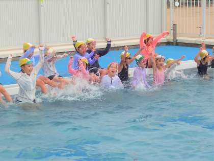 潜ることのできるグループは、男子対女子で、水中石拾い競争をしました。