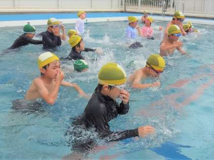 潜ることのできるグループは、男子対女子で、水中石拾い競争をしました。