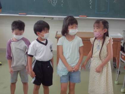 「おおきなかぶ」の音読劇の発表会をグループごとに行いました。姿勢よく、大きな声で、台詞に気持ちを込めて、発表しました。以前に発表したときと比べても、台詞の抑揚の付け方等、とても進歩しました。