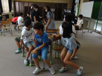 みんなでよい思い出をつくろうと、まず、椅子取りゲームをしました。