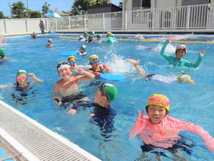 子供たちの笑顔あふれるプールの様子は、見ている側も嬉しい気持ちになります。