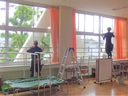 今日一日かけて、窓ガラスをピカピカにしてもらいます。2学期から気持ちよく過ごせます。