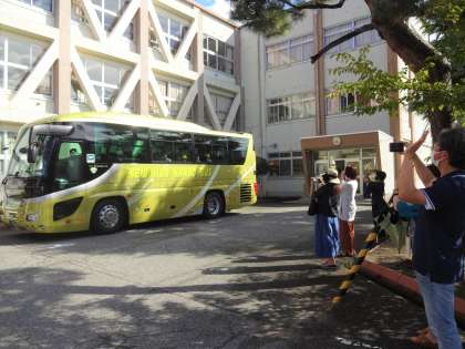 午前8時30分、6年生の子供たちを乗せた貸切バスは、2泊3日の集団宿泊学習をするために、国立能登青少年交流の家へ向かって出発しました。