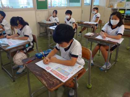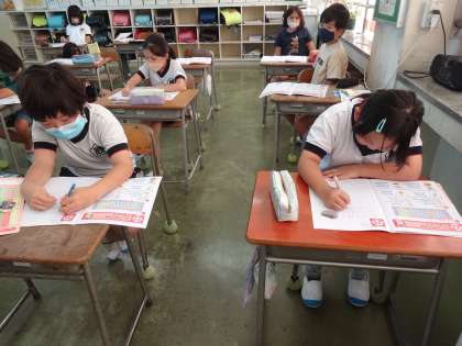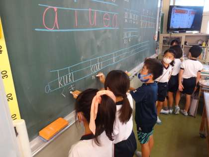 また、ア行とカ行のローマ字だけを使う言葉を見付け、書き表す学習もしました。