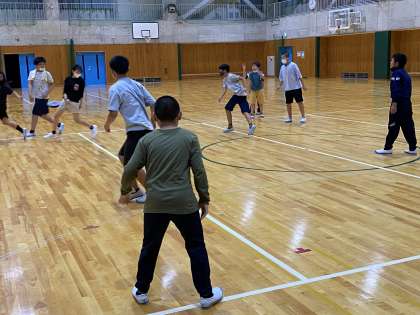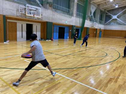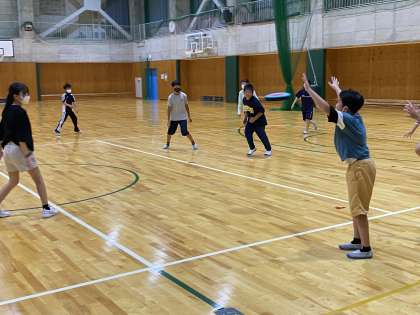 体育館へ移動して、ドッヂビーをしました。ドッヂビーの数を増やすなと、いろいろなパターンで試合をして楽しみました。予定になかった活動です。