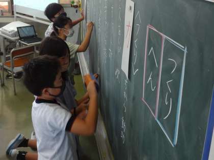 発表したい子供が、黒板に書きにきました。