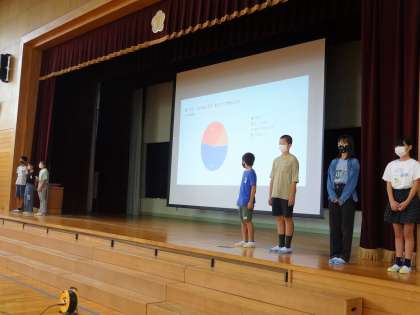 今日は、運営委員会が、1学期の挨拶運動のアンケート結果について発表しました。