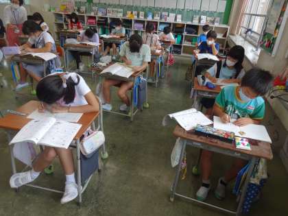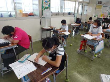 静かな4年生教室。集中して筆算の問題に取り組んでいます。