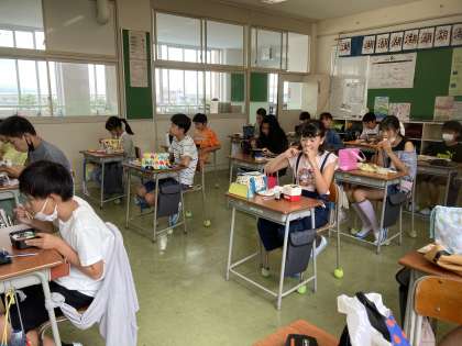 今日は、チャレンジ陸上記録会の予定でしたが、悪天候のため、9/16(金)に延期になったため、家族に用意してもらった弁当を学校でおいしくいただきました。