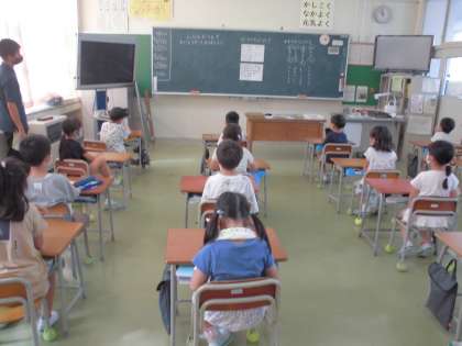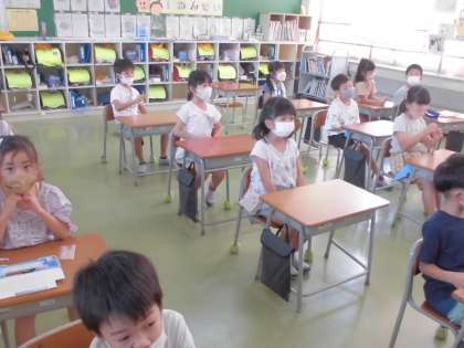 「くじらぐも」の歌をCDの音源に合わせて歌う練習をしました。1年生らしく元気よく歌いました。