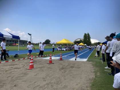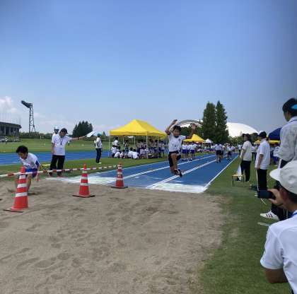 走り幅跳びが始まりました。練習、本番一回ずつ跳びます。跳ぶ前に助走位置やフォームを確認しながら挑みました。