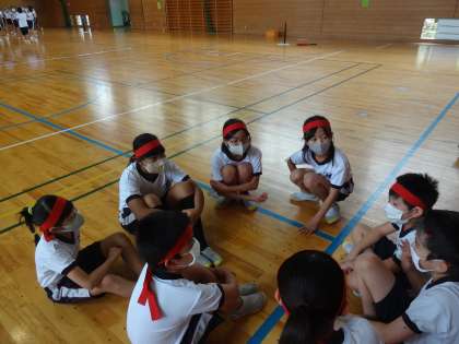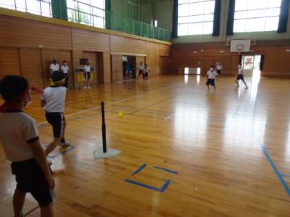 ティーボールの運動特性やルールに慣れてきたため、作戦を考えて取り組めるようになってきました。特に、守備の仕方に着目してゲームをしています。
