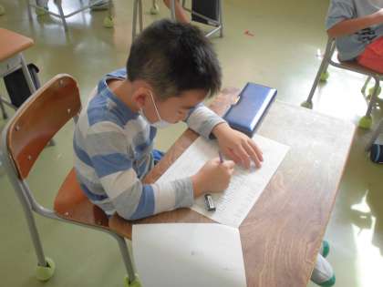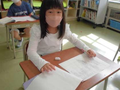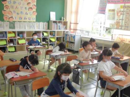 学習発表会で発表する「くじらぐも」の台詞の分担を決めました。自分の担当はどこになるのかとても気になるので、真剣に聞いています。明日から3連休なので、家で練習します。