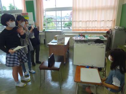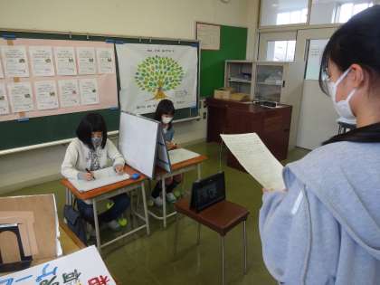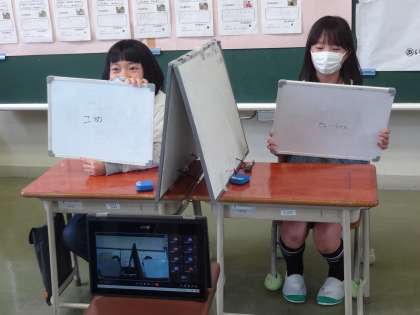 今日は、「相性何%ゲーム」です。4年児童2人に出演してもらいました。
