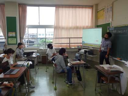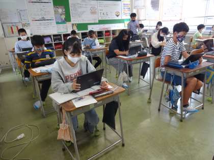 一人一人が、デジタル教材を使って円を分割します。徐々に分割数を増やしていき、パーツを組み合わせて、平行四辺形、長方形の形に近くしていきました。この形なら、面積を求められそうです。