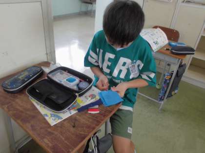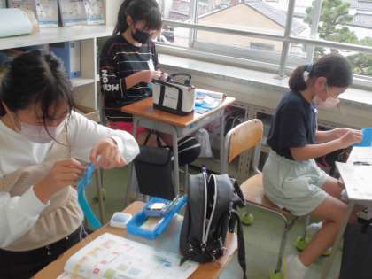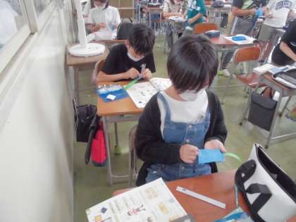 「マイ・ミニバッグ」を製作しています。今日は、フェルトを丁寧に縫い合わせました。どんなミニバッグになるのか楽しみです。