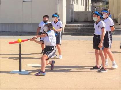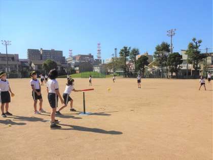 今日は、さわやかな晴天の下、グラウンドでティーボールをしました。