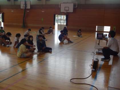 今日は、体育館で、スクリーンに動き方を映しながら、実際の動き方をシミュレーションしました。