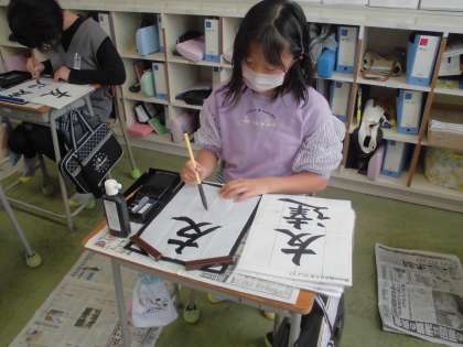 前回は、「道」を書きました。今日からは、「しんにょう」の第2弾として「友達」を書きます。しんにょうの形を整えることがねらいですが、友の字もなかなか難しく、少し苦労しました。来週も「友達」を書きます。