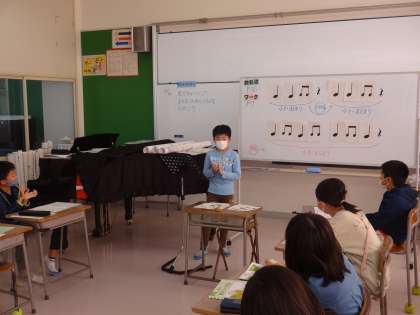 そして、そのリズム打ちを発表し、みんなで一緒に手拍子してみました。