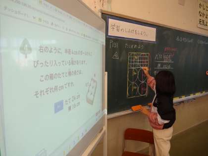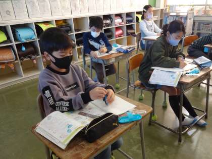 コンパスで6つの円をノートに描き、どのような式を立てるとよいか考えました。友達の考え方と、自分の考え方と比べながら学びました。