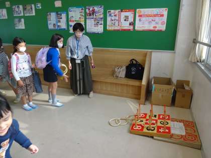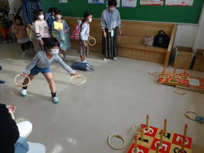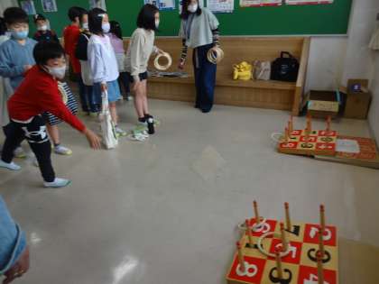 輪投げは、高学年になるほど投げるテンポが速くなり、正確性も増していました。さすがです。