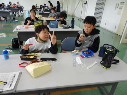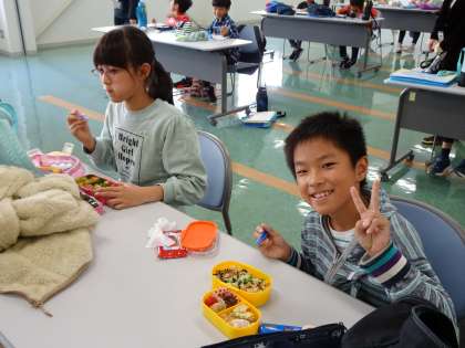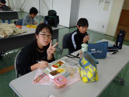 エコタウンの会議室をお借りして、お弁当を食べました。みんな待ちに待った様子で、笑顔でおうちの方がつくってくれたお弁当を美味しくいただきました。