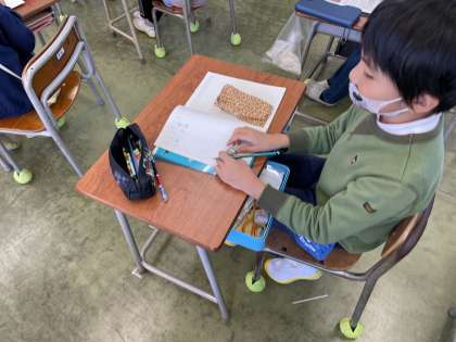 なかよし遠足から帰ってきて疲れていますが、2年生は、勉強もがんばりました。
